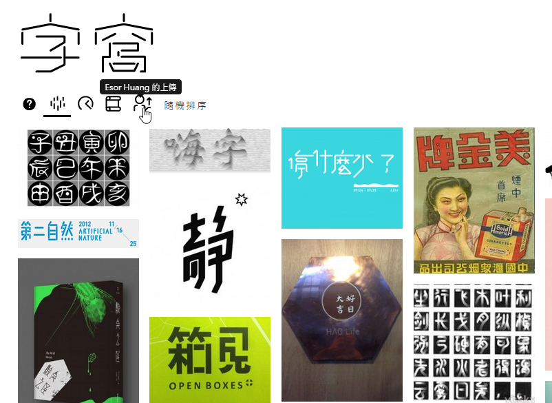 1.打開「字窩」 網站,在不需登入任何帳號時,我們也可以翻閱其他用戶上傳的所有中文字體設計照片,搜尋網站內容。